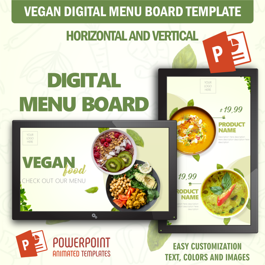 Vegan Menu - Digital Signage PowerPoint Animated Template (Restaurant Food Menu Board)